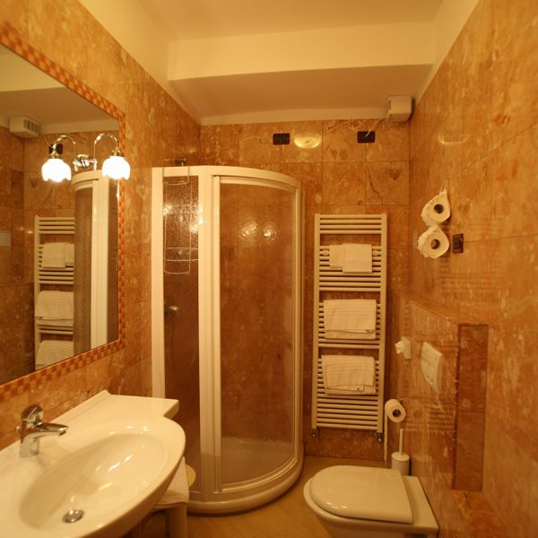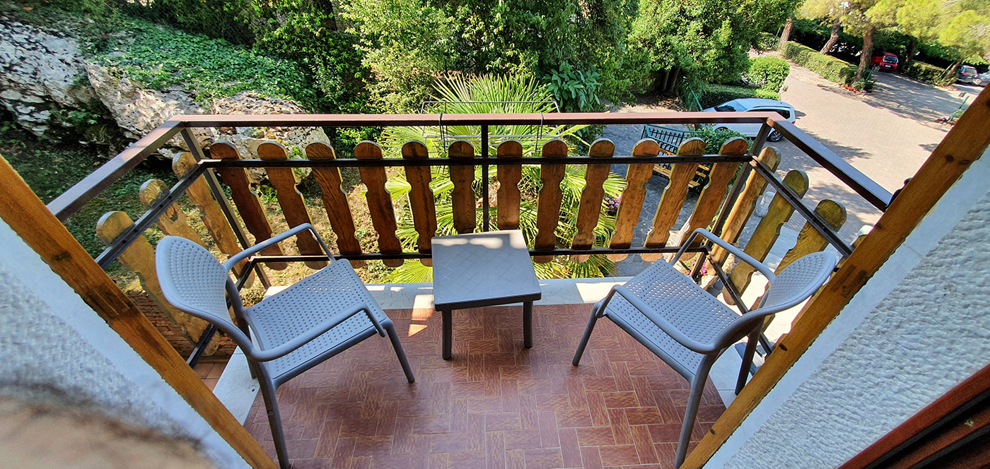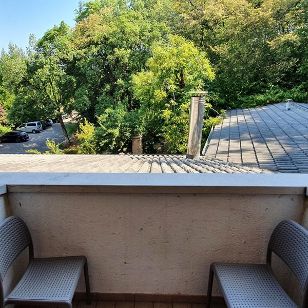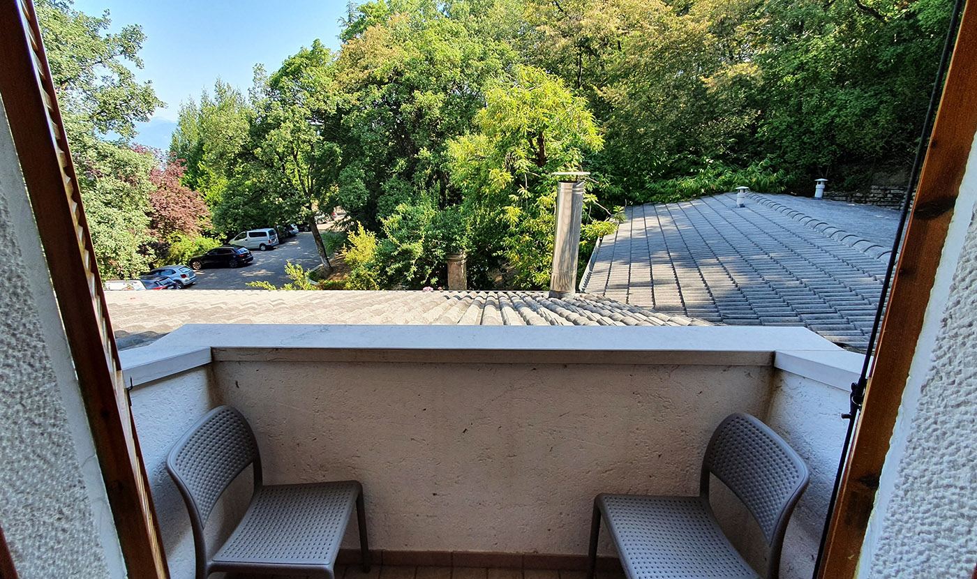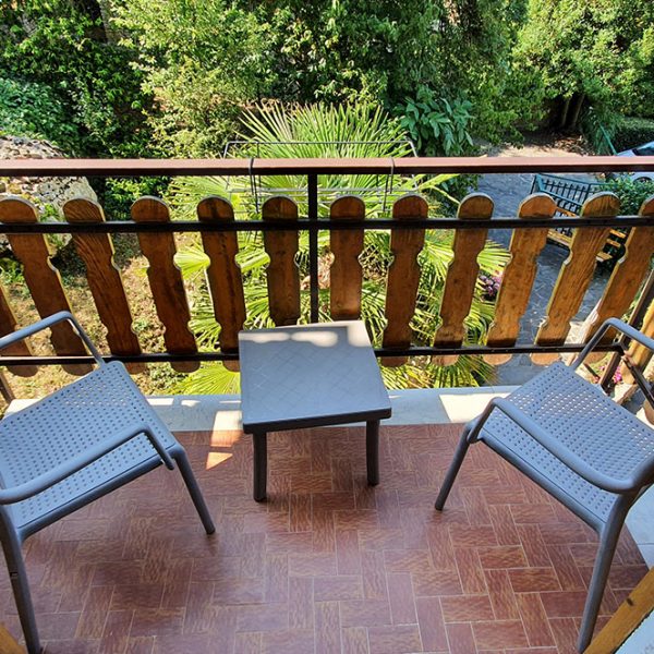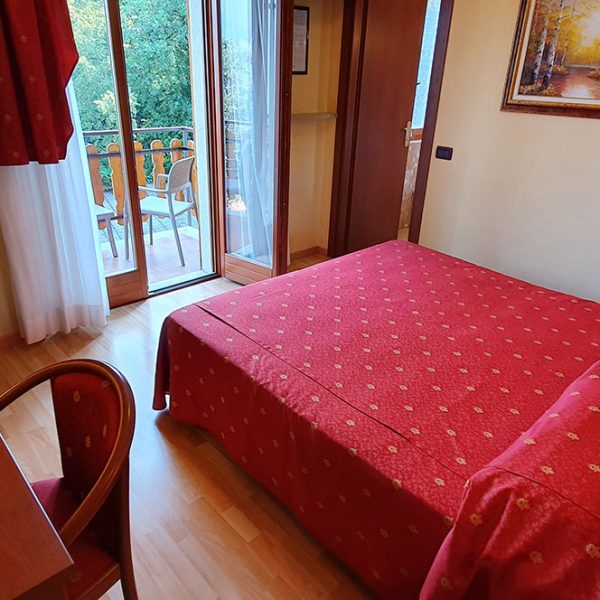 Piccola camera doppia uso singolo situata al 1°piano con balcone laterale con vista sul giardino o vista limitata del lago. La camera dispone di frigobar, cassaforte, TV, telefono con linea diretta, parquet. Bagno in marmo con doccia, bidet, asciugacapelli, set cortesia.
